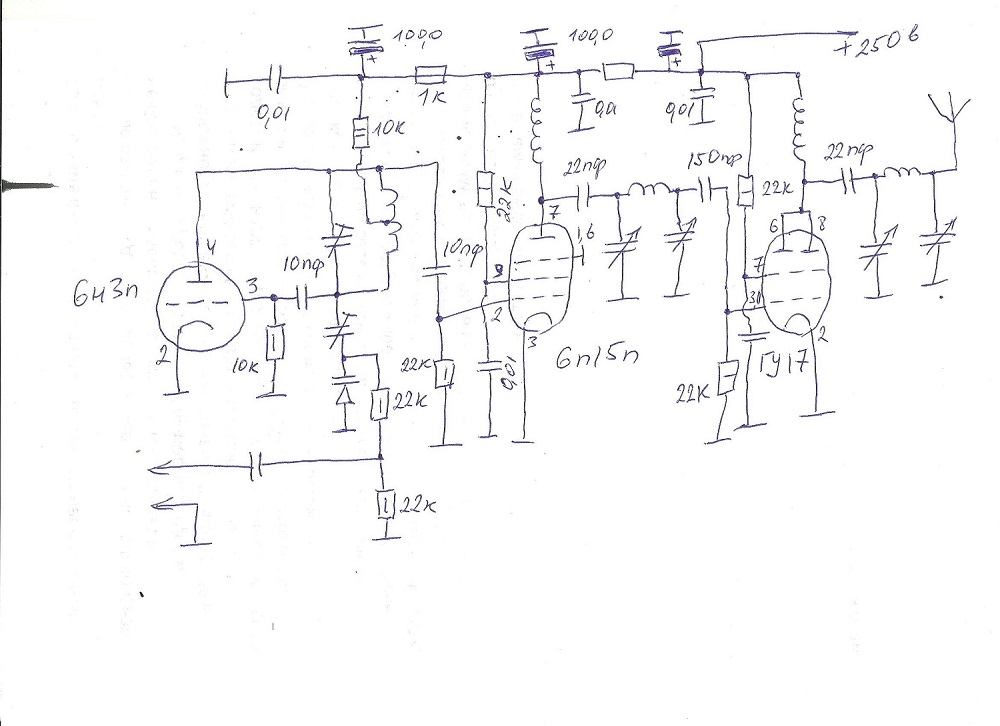 А вот пример построения лампового укв передатчика.А ты там п-контуров понавтыкал между каскадами. На выходе УМ да, там П-контур нужен. Это схема передатчика на 144мгц. И на всякий случай описание скину.Тебе ВЧ часть интересует.