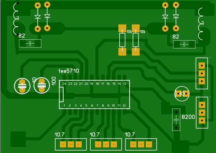 Катушки и варикапы максимально ближе к микросхеме надо разместить - все таки высокие частоты.Каждый миллиметр печатного проводника это + к индуктивности. Катушки под 90 градусов друг к другу,чтобы не было взаимного влияния.