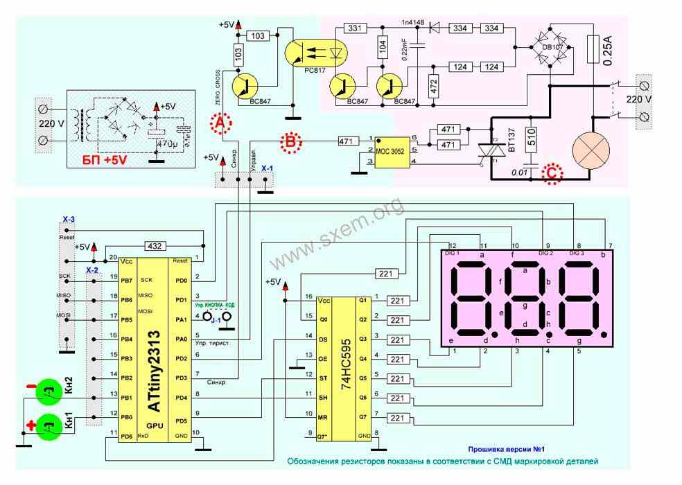 Замечательно)) Регулирование температуры: В регуляторе совмещены релейный и пропорциональный алгоритмы управления нагревателем. Регулирование осуществляется фазо-импульсным методом. Ты уже придумал как это сделать?)) ШИМ на лампах будет? ... А частота ШИМ - 50 Гц? Синхронизация по сети? А где на схеме? Зачем переписал всё с сайта.. ты на 7-ми сигментнике будешь делать или на экранчике... Если на экранчике, то зачем тогда нажать и удерживать соответствующие кнопки более двух секунд, если на экранчике и так есть все режимы..)) Нажимай на кнопку.. выбирай/меняй любой режим.. Например так: