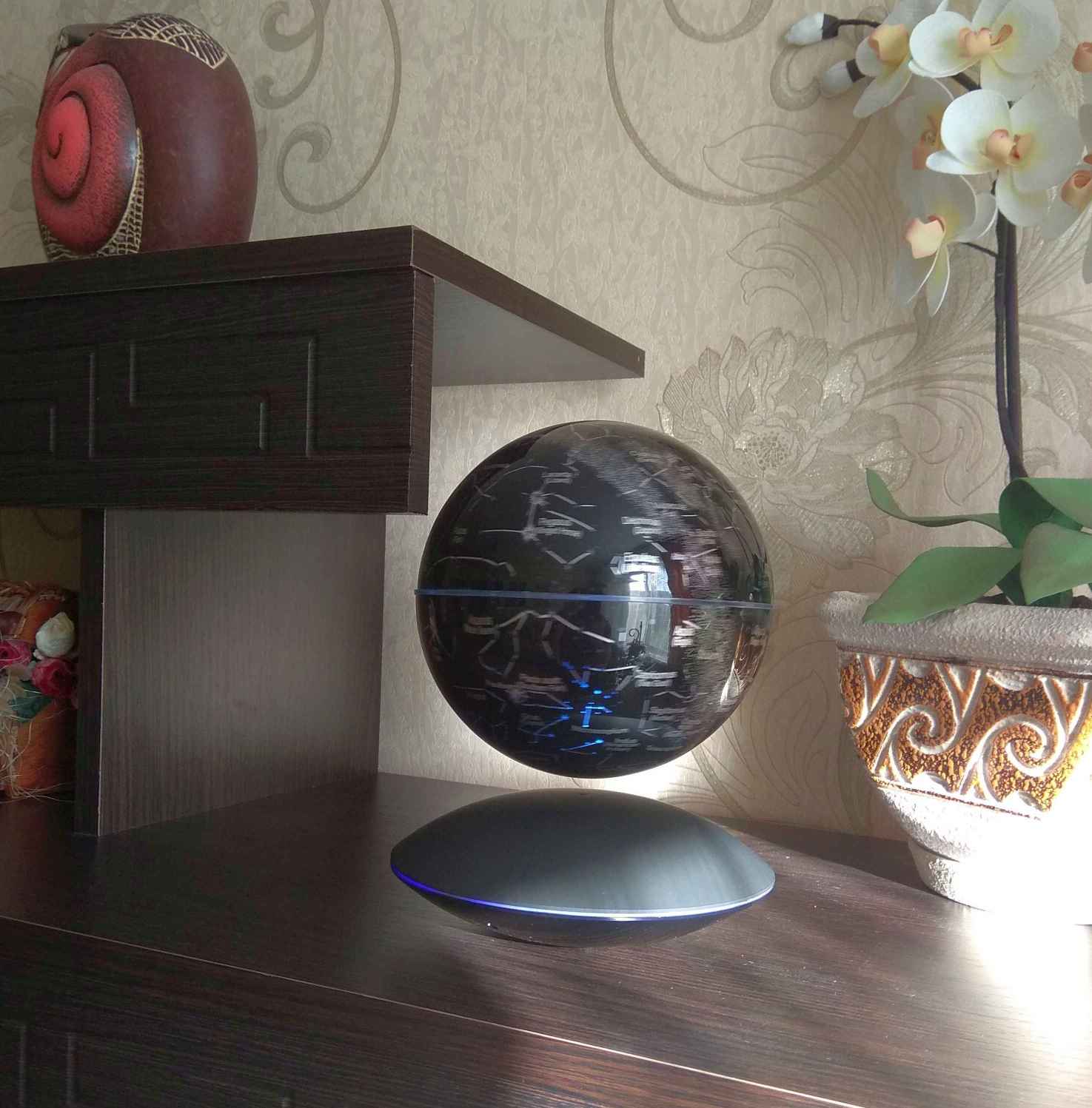 2 pasigelite Разницы между ними нет. Если кому интересно, могу пофоткать и выложить "внутренний мир" такого левитатора. Кратко: Блок питание 15В 1А, потребляемая мощность около 5Вт. Глобус зависает на расстоянии около 1см от базы в магнитной яме. Через некоторое время начинает раскручиваться в случайную сторону. Присутствует беспроводная передача энергии в глобус. Внутри глобуса переливается цветами радуги светодиод. В темноте глобус просвечивается через "звездочки" - выглядит неплохо.