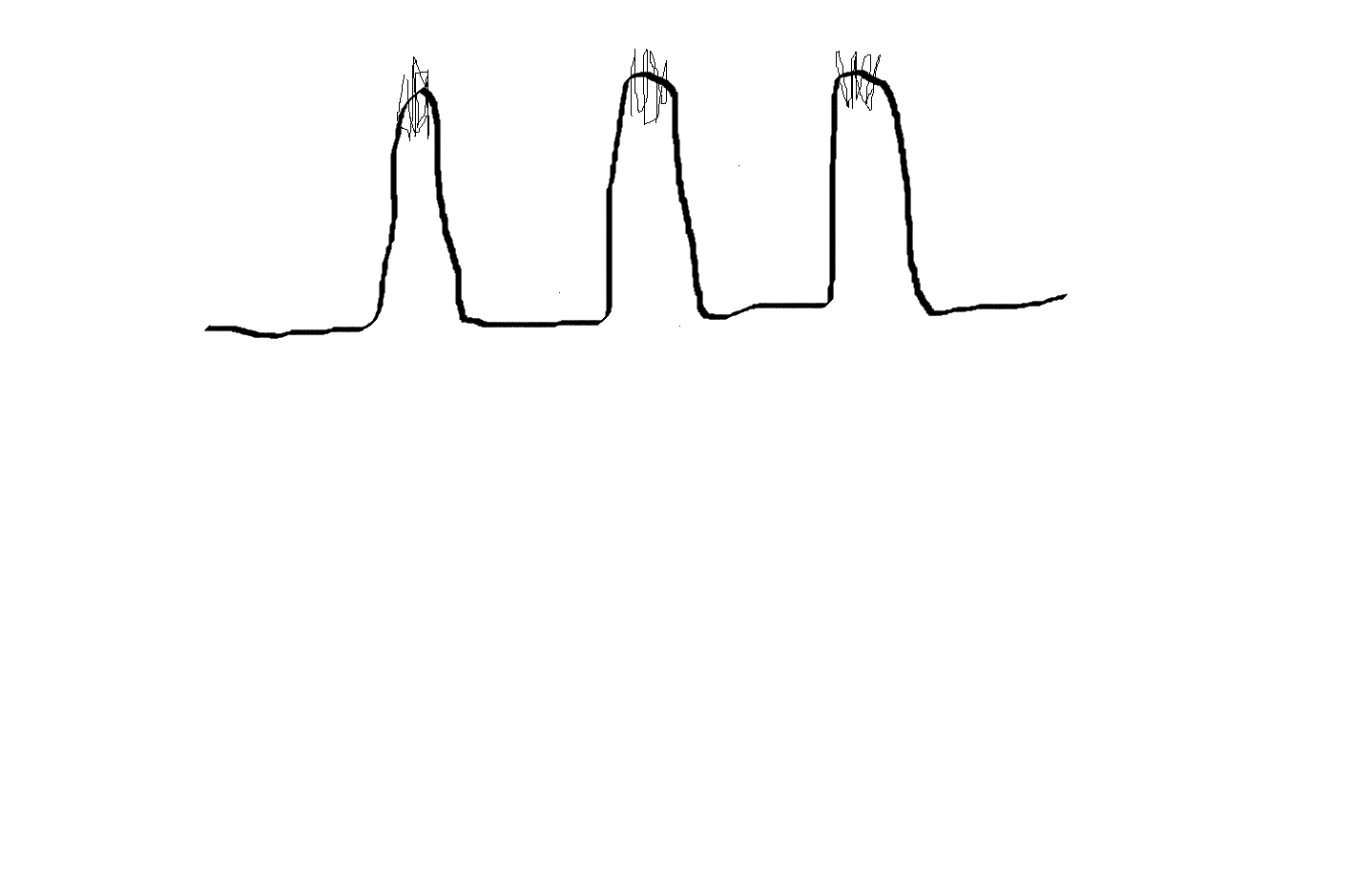 Всем доброго дня! Выпаял транзисторы УНЧ Т6-Т9 чтобы исключить их влияние на предыдущие каскады усиления. Выявилась такая особенность-на базу транзистора Т5 приходит нормальная синусоида (подключил ко входу УНЧ НЧ генератор), а на коллекторе уже не синусода (см. рисунок), причем на вершинах наблюдаются какие то помехи и дергается (показано на рисунке). В чем может быть проблема? Транзисторы проверил все нормальные. Помогите в чем может быть проблема?
