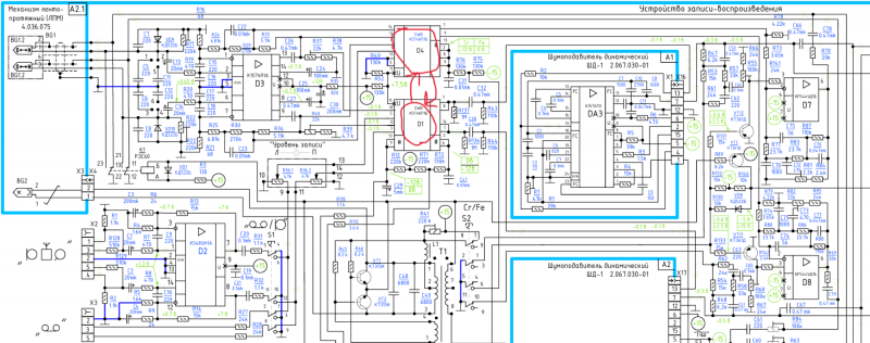 Типовой дефект таких маяков - закисли контакты реле, переключающее выводы магнитной головки из режима воспроизведение в режим запись. Самый простой способ выявления деффекта - поочерёдно тыкаете щупом от мультиметра на входы микросхемы усилителя воспроизведения, при этом в поочерёдно обоих колонках должен слышатся фон. Далее поочерёдно тыкаете щупом на выводы магнитной головки, также должен быть слышан фон, если его нет, значит нарушена коммутация от выводов головки до входов микросхемы УВ, в этом случае либо меняете реле, или просто перемыкаете дорожки в точках пайки выводов реле, если режим записи не нужен. Ещё бывает дохнут шумодавы, для диагностики платы шумоподавителей левого и правого каналов вытащить из колодок, и поменять местами, там делов на 30 секунд. Да и сами разъёмы/колодки на материнской плате, в которые втыкаются платы блоков то ещё говно, окисляются и теряются контакты, либо имеют место кольцевые трещины пайки.