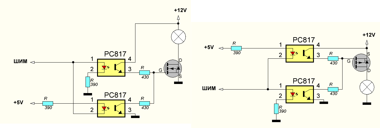 Кстати, ШИМ на лампы накаливания решил всё-же делать на N-канальном транзисторе и лепить к лампам пару реле вне схемы. ДХО позже при любом раскладе буду делать на светодиодах отдельно от противотуманок и проводку ламп восстанавливать в оригинальное состояние. В общем с N-канальным всё будет проще. Тем более что их у меня горсть. Будет на чем поэксперементировать.