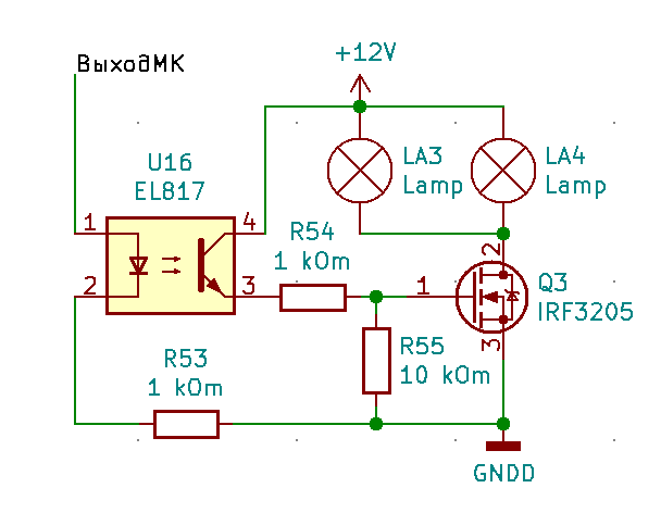 Ну и в затворе лучше применить резистор 430 Ом в место 1 кОм. Хорошо бы осликом посмотреть как поведёт себя транзистор… может ему некий драйвер на двух оптронах соорудить если будет греться…