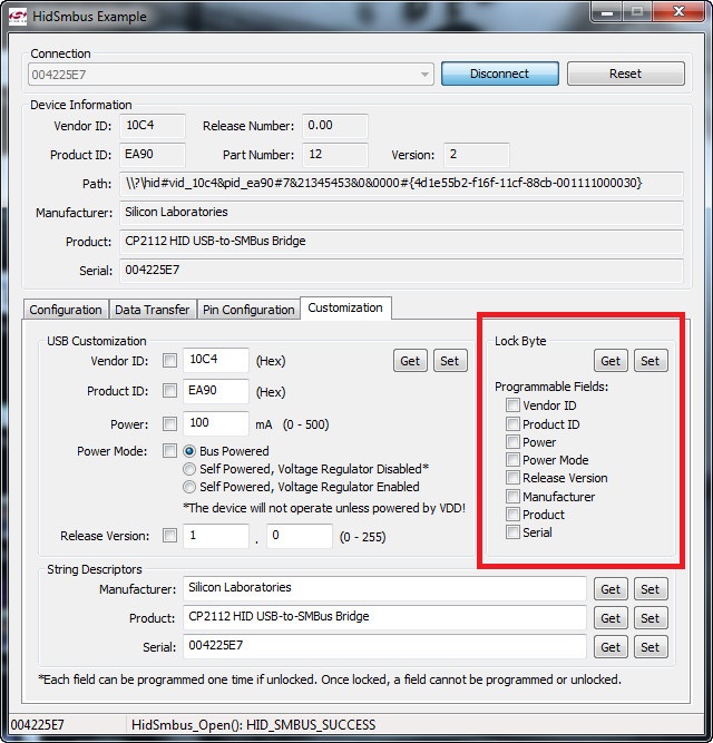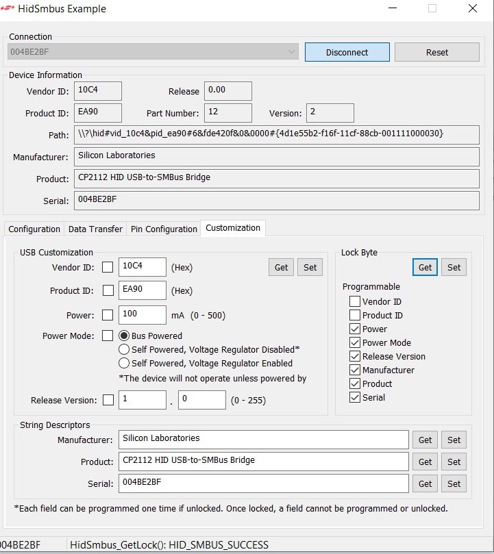 Когда они сняты и это записано кнопкой Set то соответствущее поле уже нельзя редактировать . Все это написано в файле документации CP2112-EK.pdf от производителя . Я постил видео на vlab , там как раз запуск 5.50 с моим адаптером . https://vlab.su/download/file.php?id=251402 Может современные адаптеры вообще не имеют OTP . Ну тогда вообще прекрасно , заказал современную